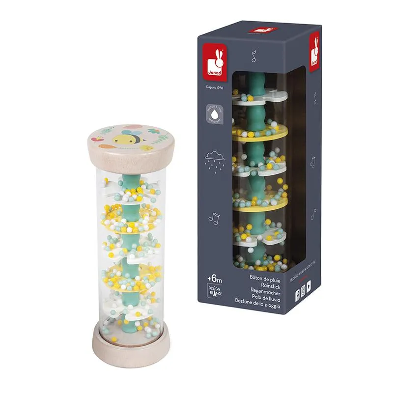 O Bastão de Chuva estimula o lado musical dos pequenos, apresentando o som idêntico ao da chuva, pois o som que emite é muito idêntico ao da chuva. As cores e as bolinhas aumentam a percepção visual, pois como ele é transparente permite explorar seu interior e observar as bolinhas cairem. Estimulando a criatividade e a coordenação motora dos pequenos de forma divertida e interativa.