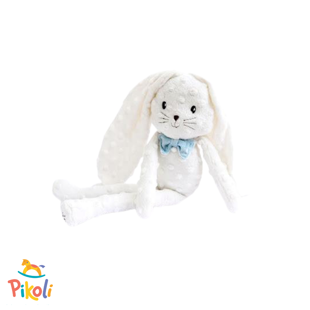 Conheça o coelho da Pascoa! Essa pelúcia fofa, branquinha, orelhuda e com o laço azul, está pronta para abraçar a criançada e viver momentos mágicos.