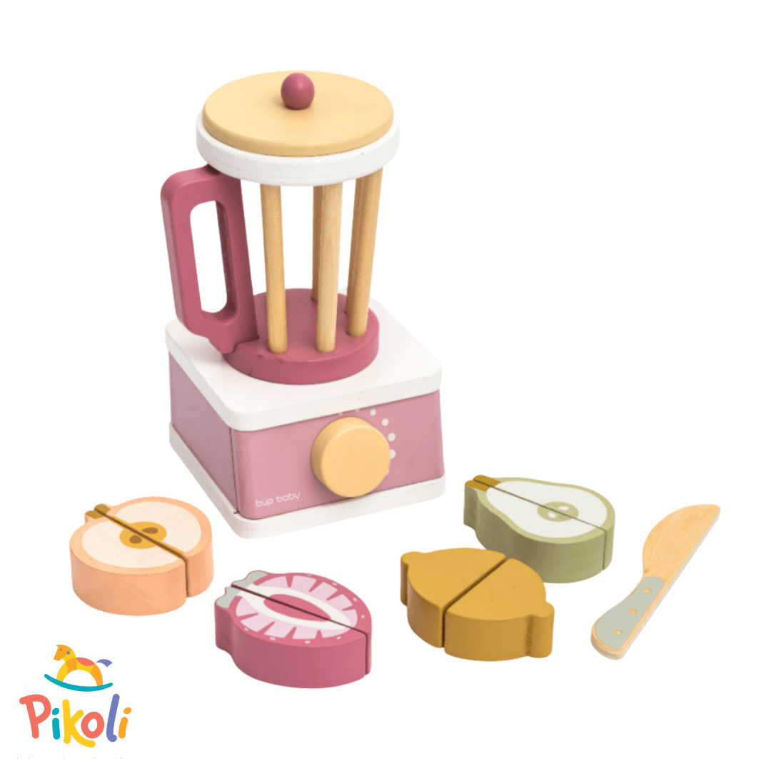 O Kit Liquidificador com Frutas Büp Baby é indispensável para compor a cozinha dos pequenos. Feito em madeira de alta durabilidade e acabamento impecável, o conjunto inclui frutas que podem ser "cortadas" e remontadas, promovendo horas de entretenimento. Um presente que estimula hábitos saudáveis e a criatividade desde cedo.