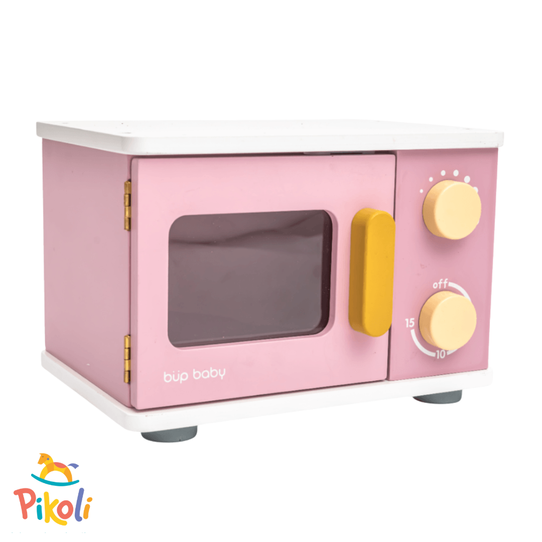 O Micro-ondas Rosa Büp Baby une o charme do design retrô com a durabilidade da madeira. Equipado com botões interativos e porta funcional, ele estimula a autonomia e a imaginação, garantindo uma brincadeira segura e cheia de estilo. Perfeito para presentear e encantar pequenos chefs de todas as idades.