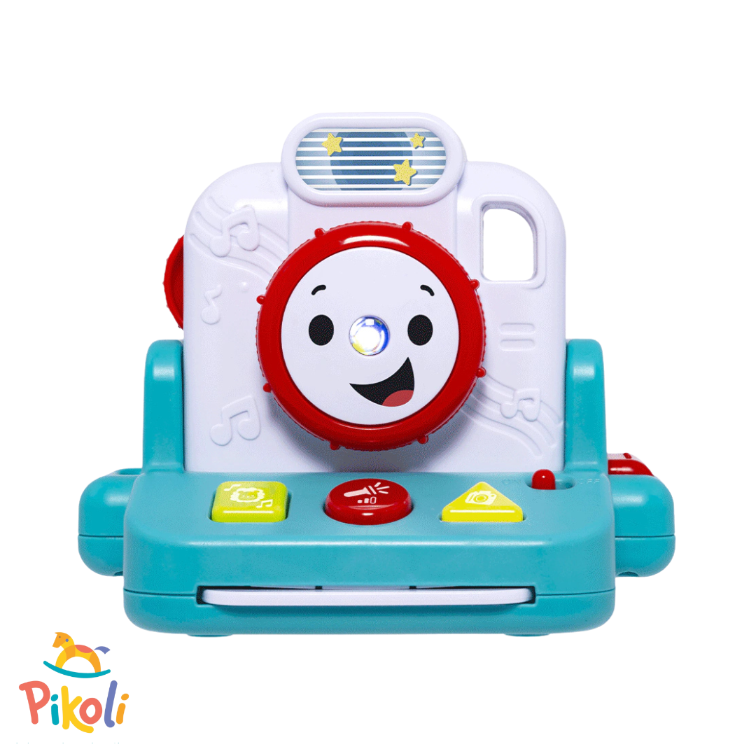 A Máquina Fotográfica com Projetor da Buba chegou para fazer a alegria dos pequenos! Conta com 8 diferentes imagens para serem projetadas na parede, 3 botões em formatos geométricos que ao serem apertados emitem diferentes sons e uma foto lenticular que altera a imagem por movimento.
