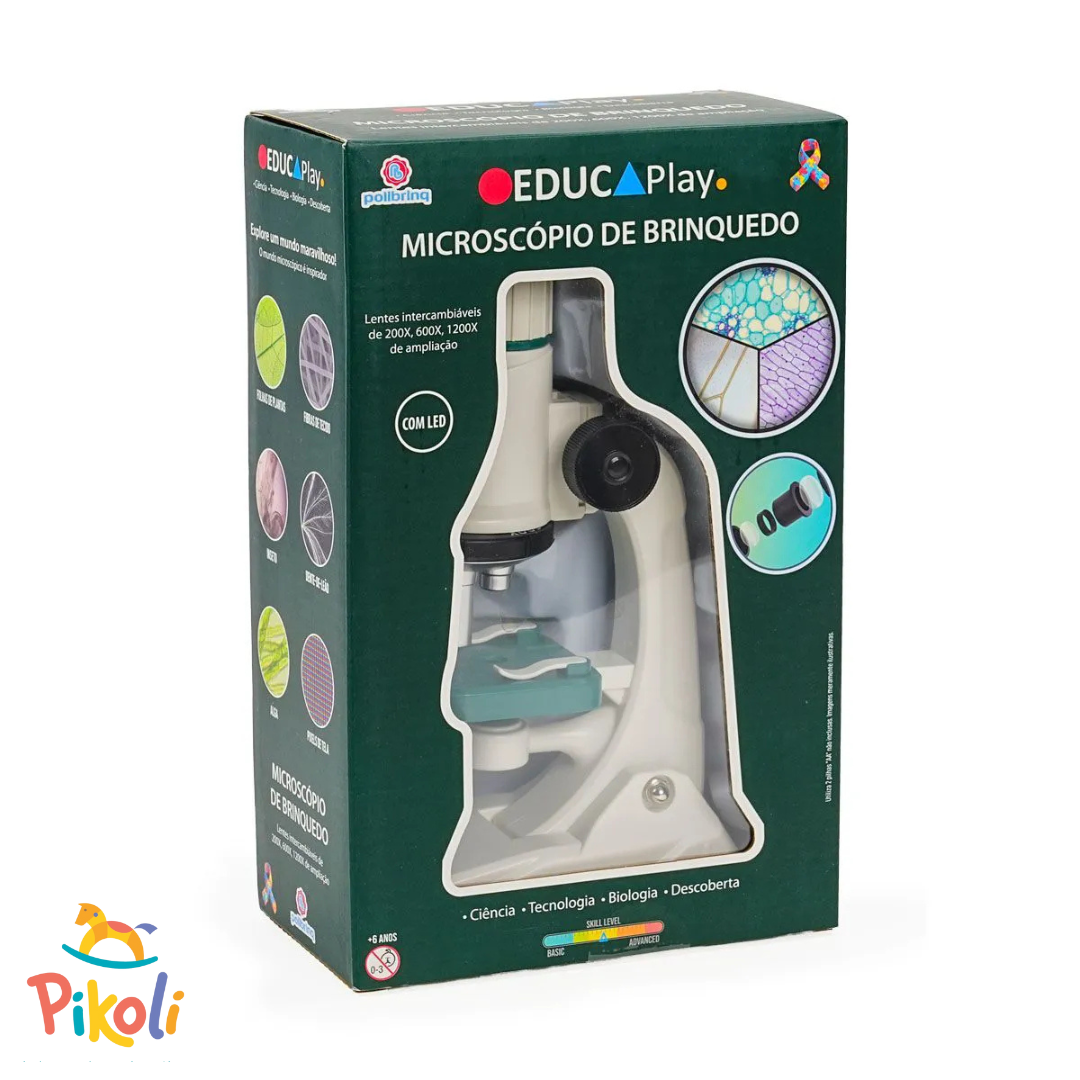 Este Microscópio tem grande poder de ampliação de 200x, 600x, 1200x, e ainda conta com um LED em sua base, o que ajuda a obter imagens nítidas e ricas em detalhes.