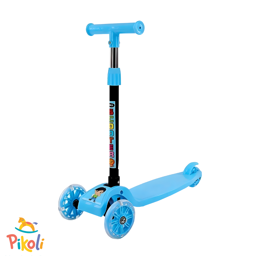 1 patinete cor azul com rodas em PVC (com luz).