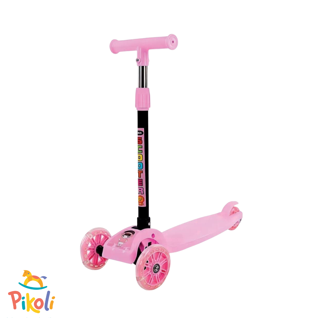 1 patinete cor rosa com rodas em PVC (com luz).
