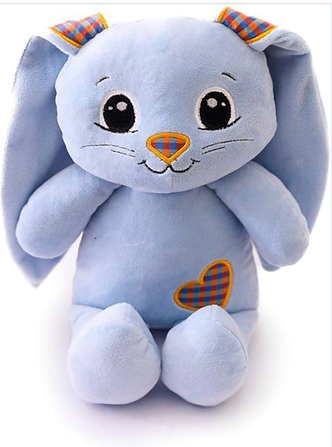 Conheça o coelho Lucas! Essa pelúcia azul claro com grandes orelhas com tecido xadrez fofa, orelhuda, está pronta para abraçar a criançada e viver momentos mágicos.